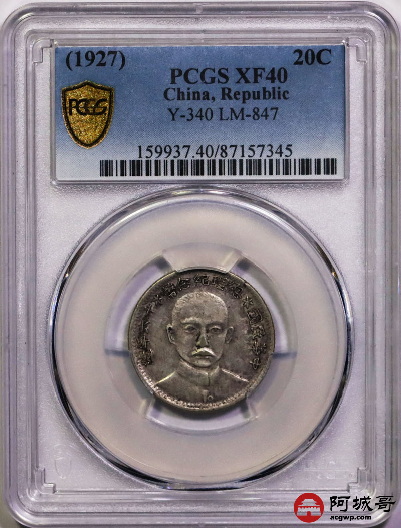 Lot:12 老包浆 民国十六年孙像总理贰角 PCGS XF40