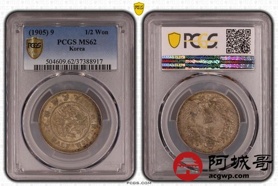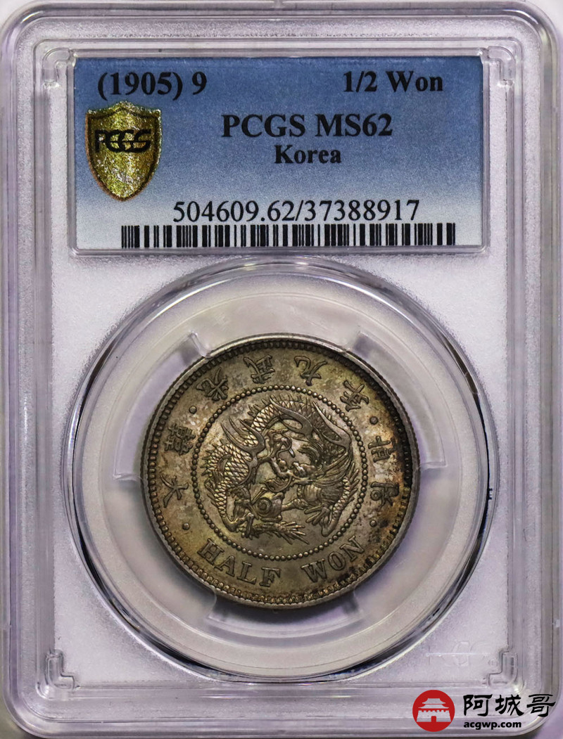 Lot:24 PCGS-MS62 朝鲜光武九年半圆五彩银币