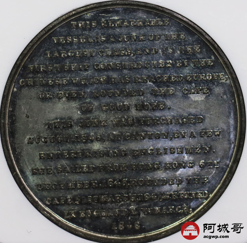 Lot:39 NGC-MS63 1848年中国帆船耆英号大型纪念章