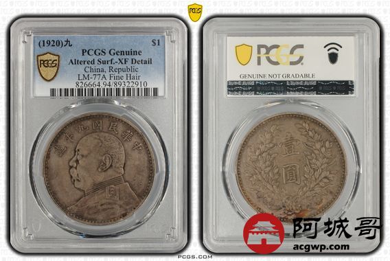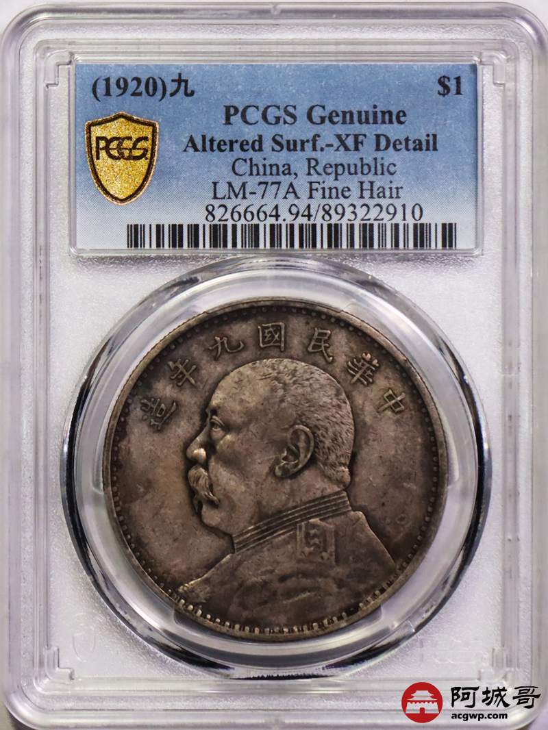 Lot:34 原味包浆 民国九年精发大头壹元 PCGS XF