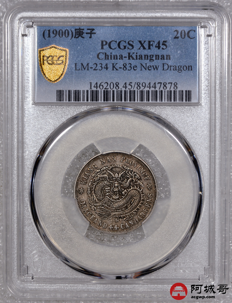 Lot:43 原汁原味 江南庚子一钱四分四厘 PCGS XF45