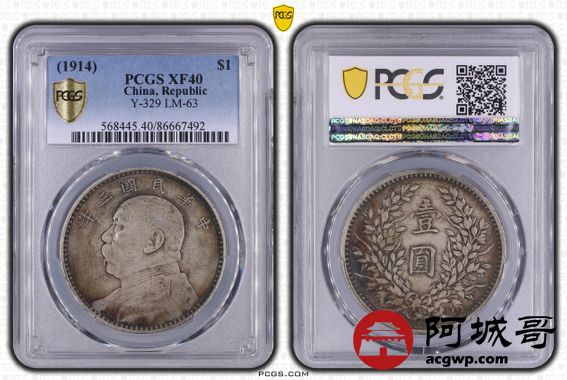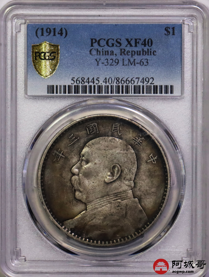 Lot:16 原味 五彩 民国三年大头壹圆 PCGS XF40