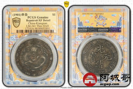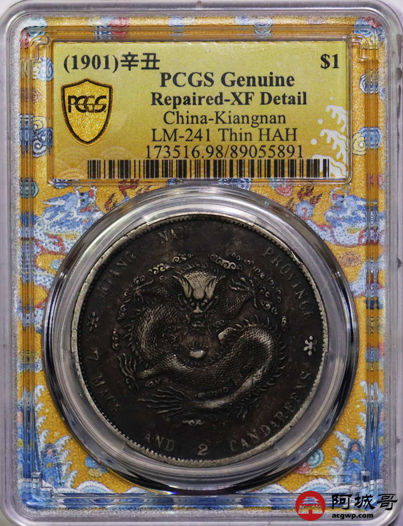 Lot:15 酱彩老包浆 江南辛丑小龙七钱二分 PCGS XF