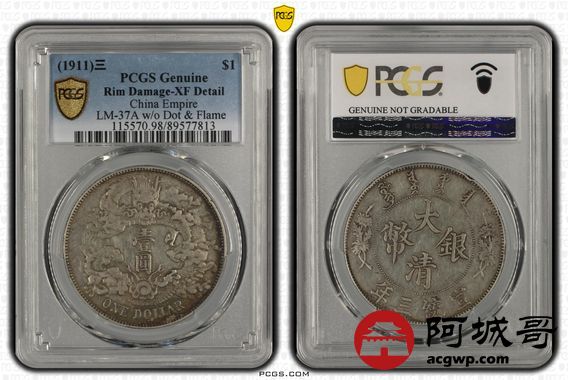 Lot:6 原味 大清宣三壹圆 PCGS XF