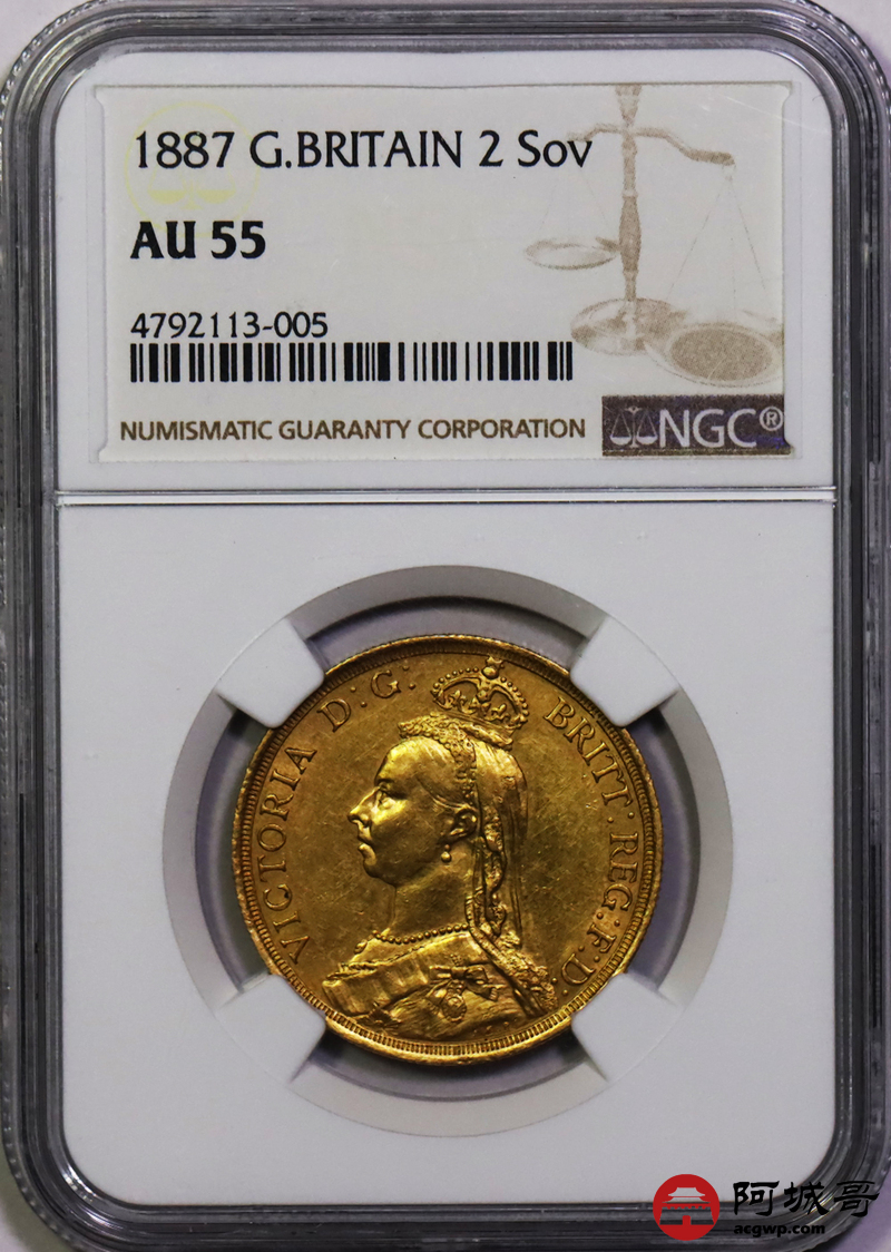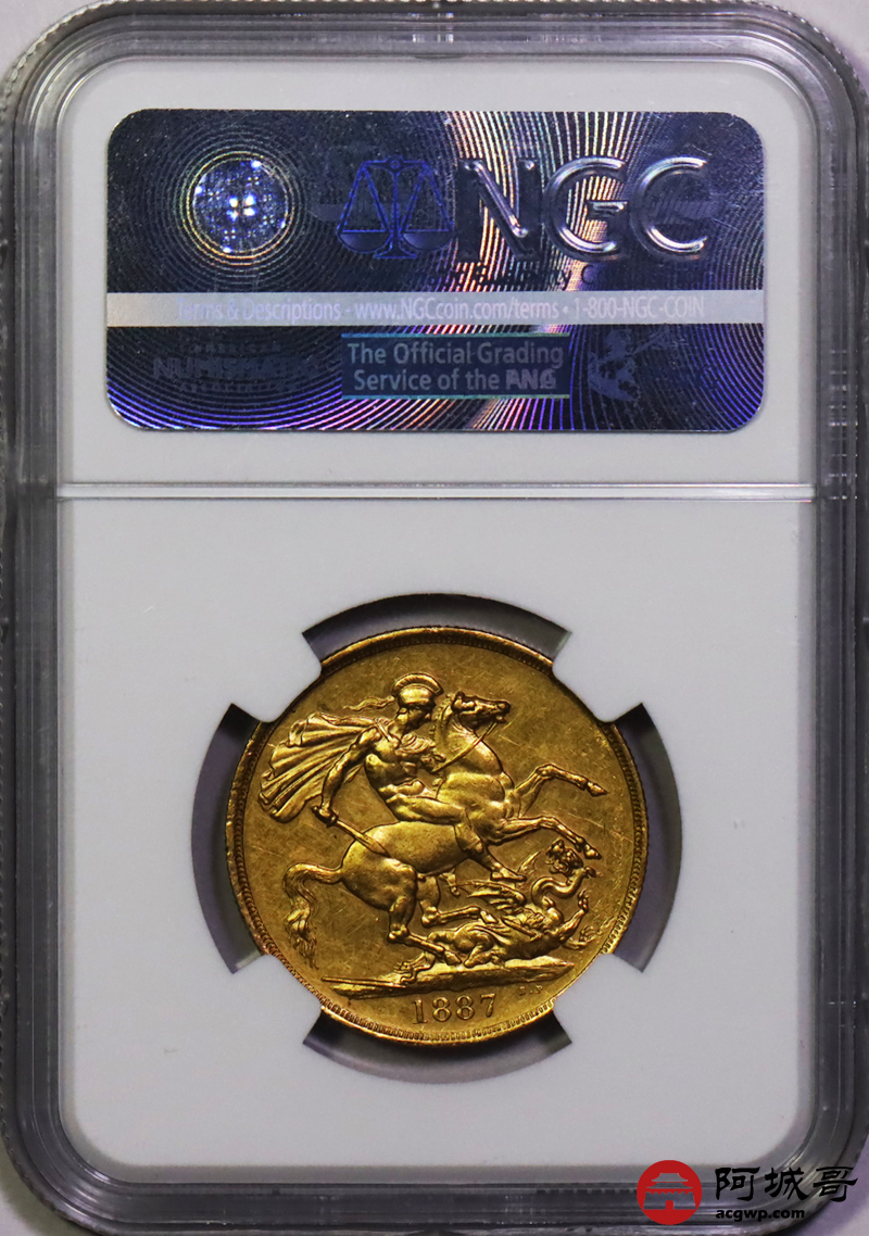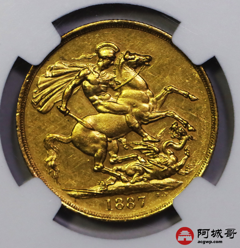 Lot:18 1887年英国马剑2索维金币15.98克 NGC AU55