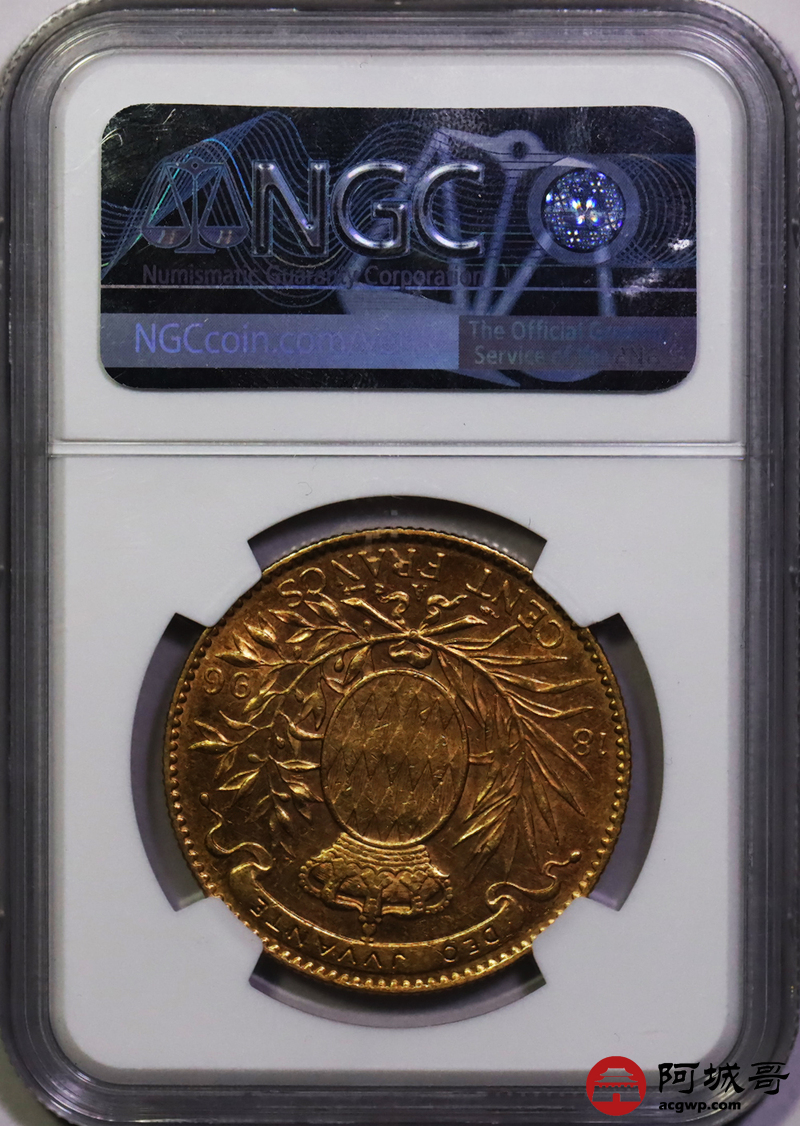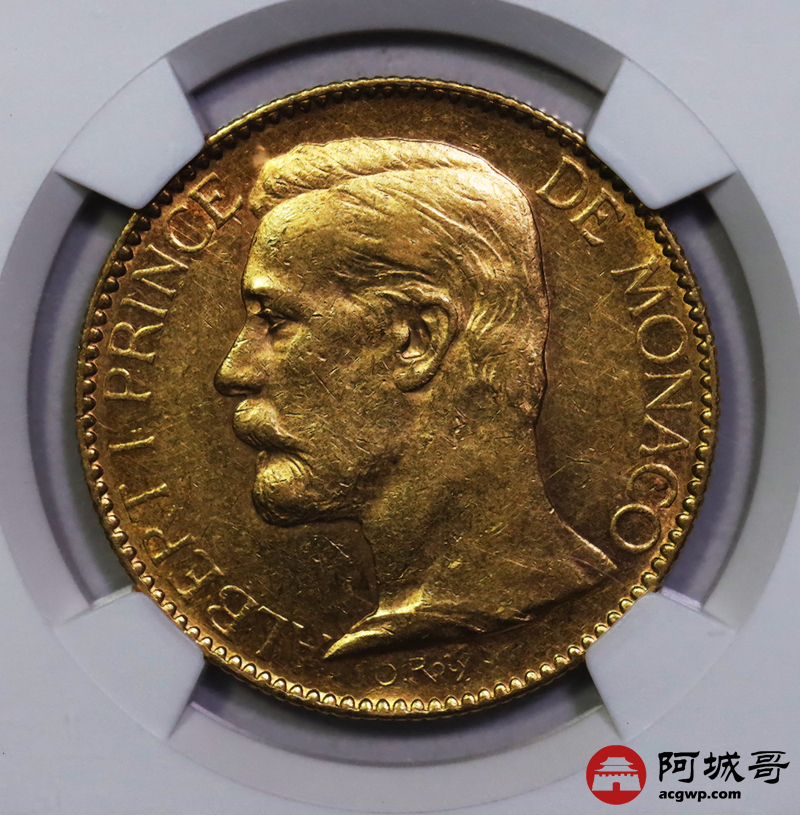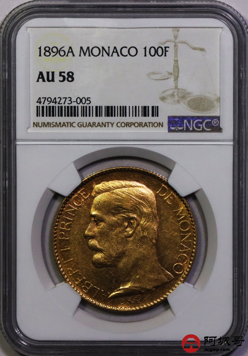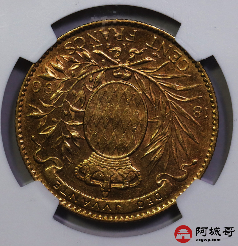 Lot:22 1896年摩纳哥阿尔贝法郎金币32.25克 NGC AU58