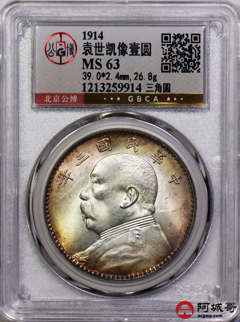Lot:2 五彩曝光三年大头三角圆GBCA MS63
