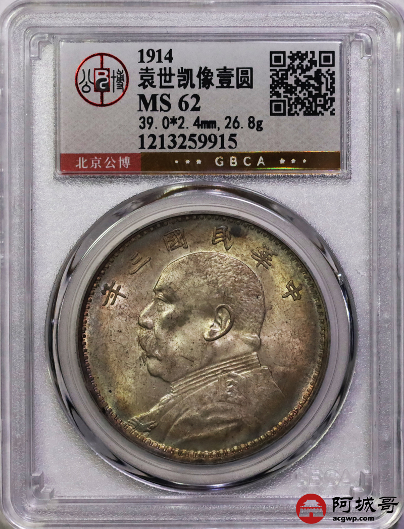 Lot:3 三年大头五彩老包浆转光GNCA MS62