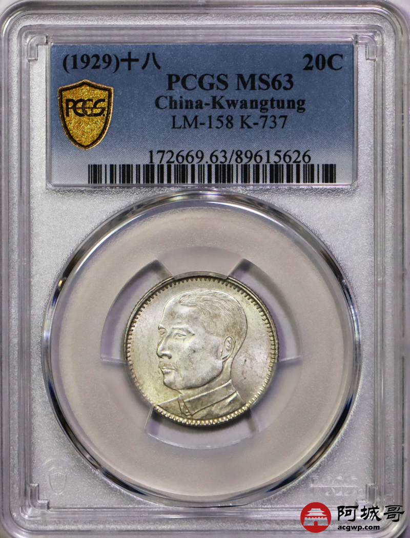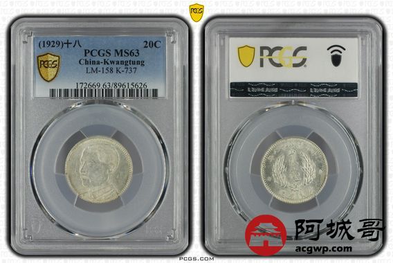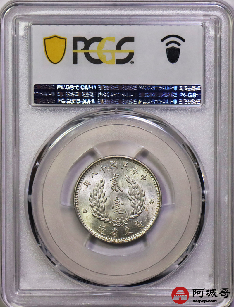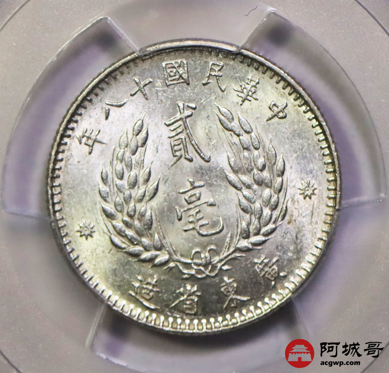 Lot:36 民国十八年广东贰豪曝光状态PCGS MS64