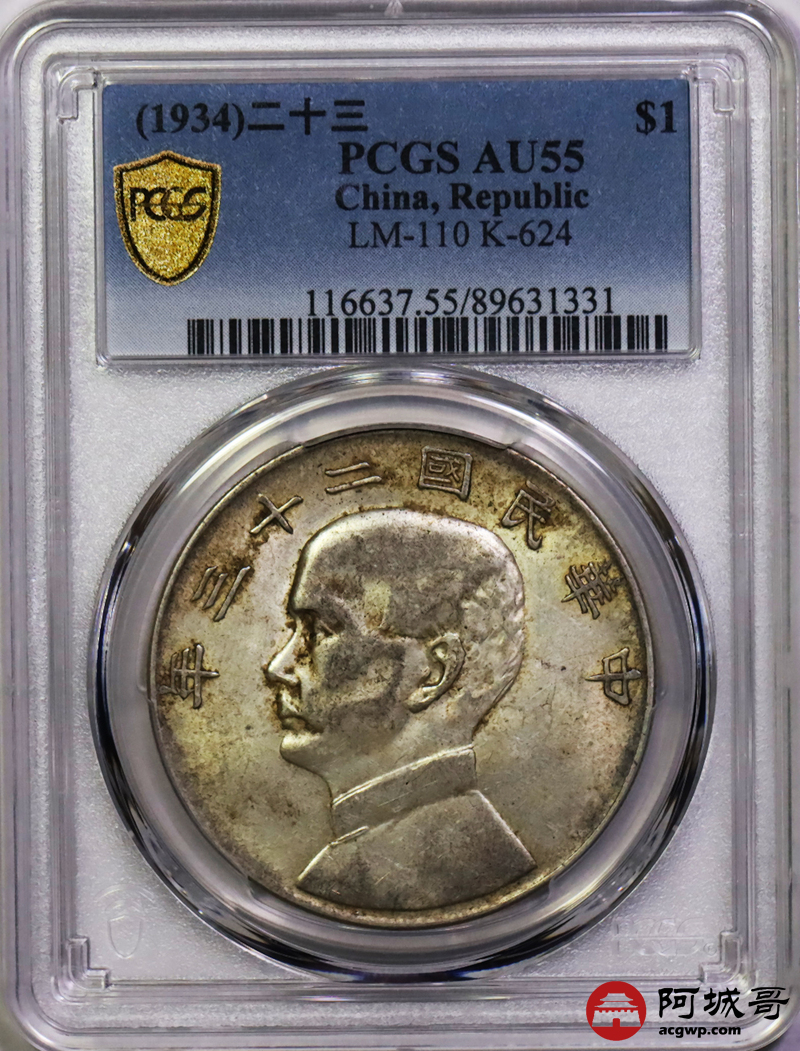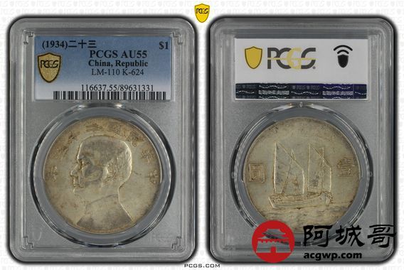 Lot:25 原味老包浆二十三年船洋PCGS AU55
