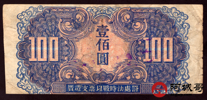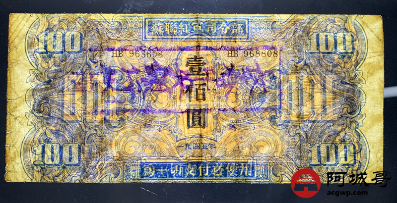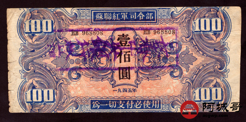 Lot:57 1945年 苏联红军司令部 壹佰圆 6成新 倒置号