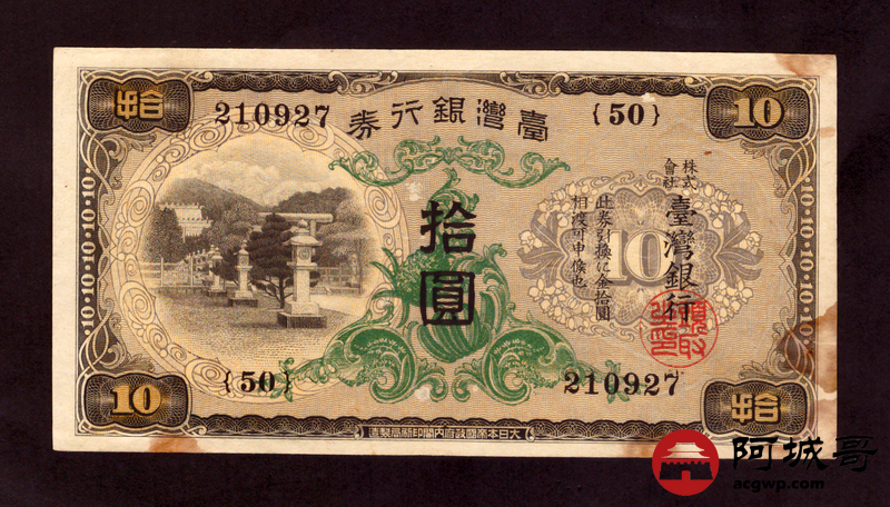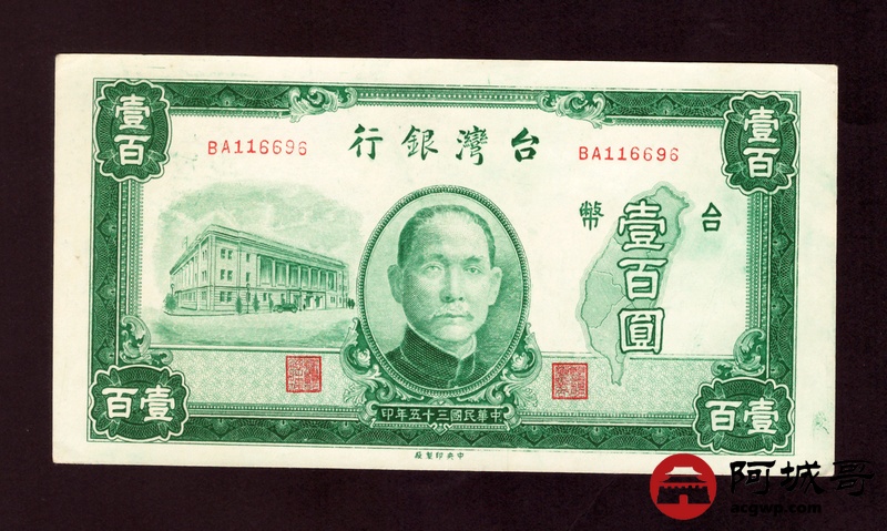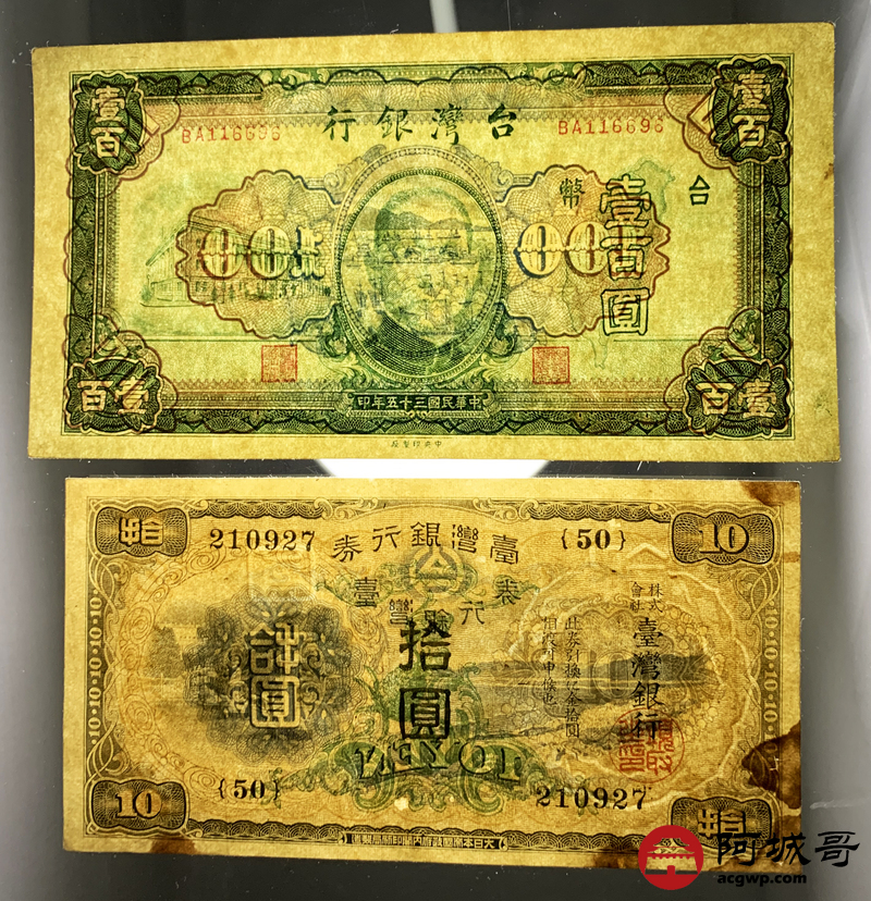 Lot:53 台湾银行 壹佰圆、拾圆 2张 75至92成新