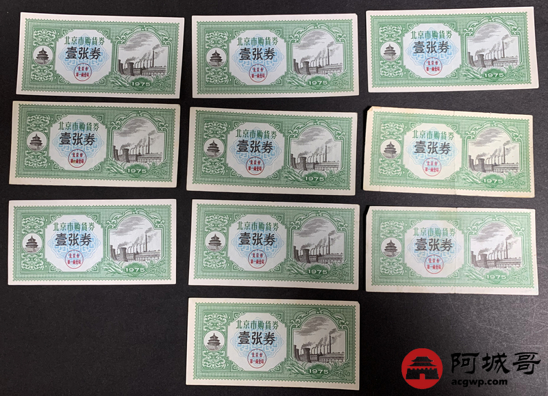 Lot:43 1975年 北京市购货券 10张 68至97成新