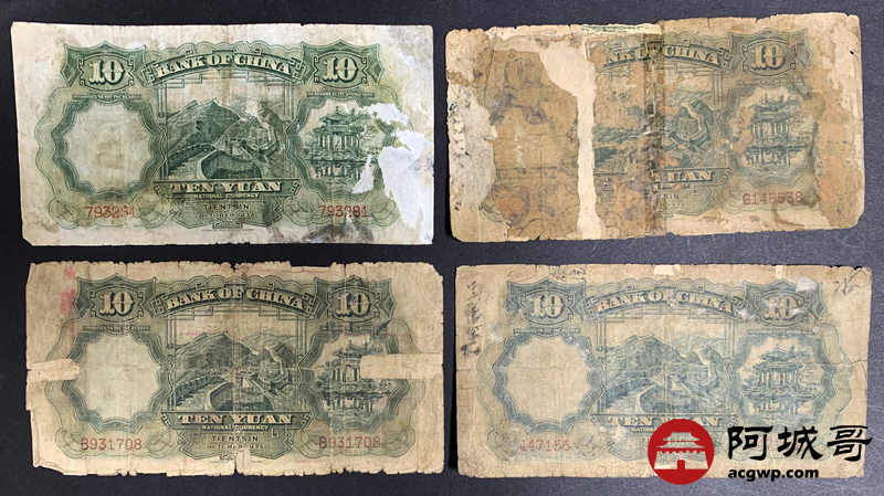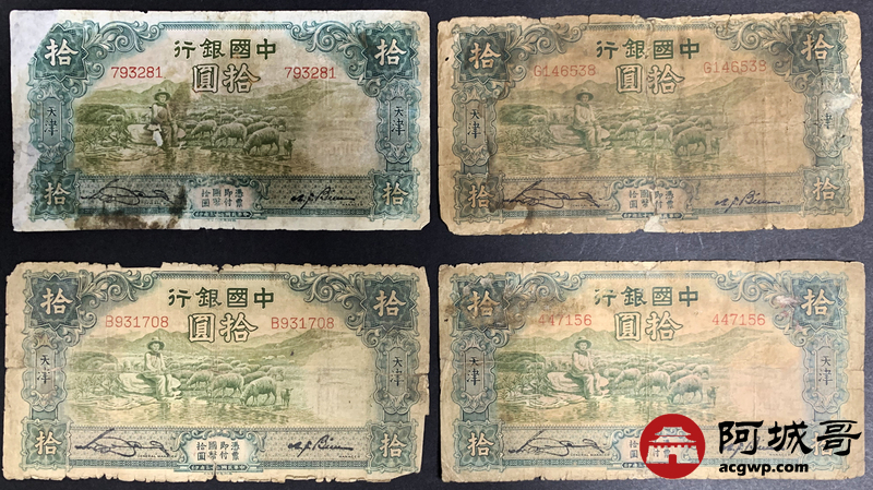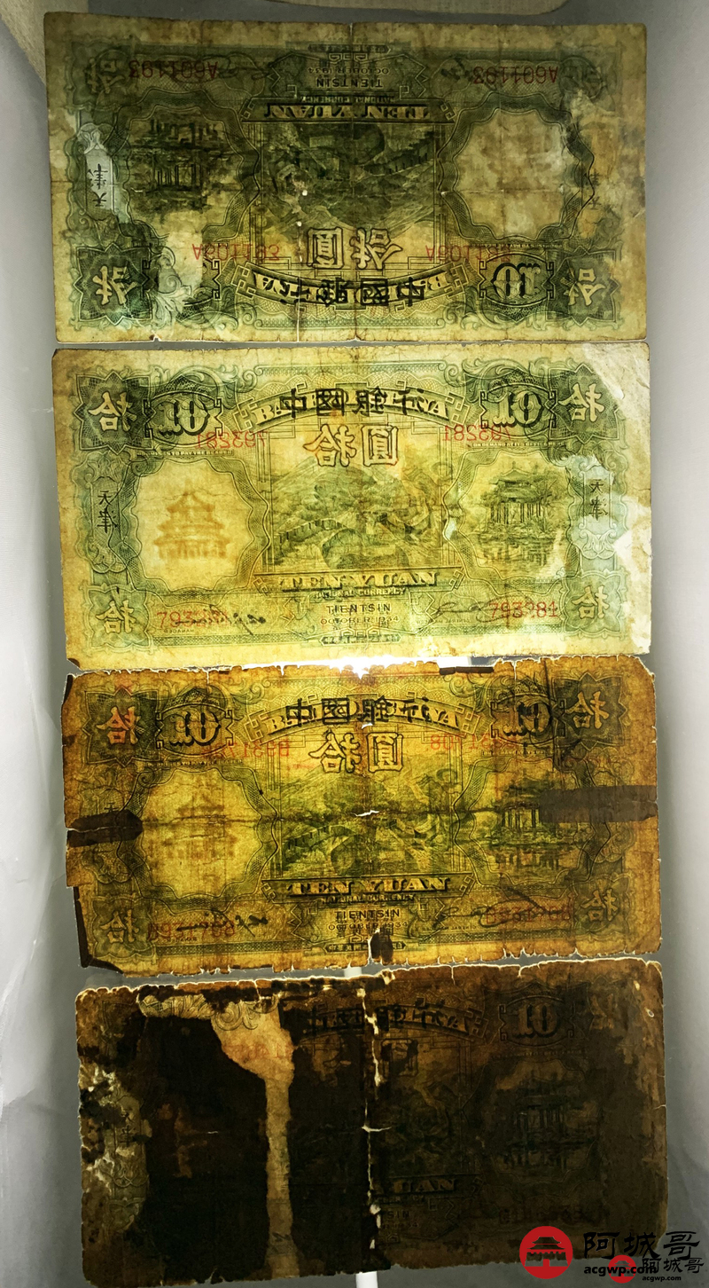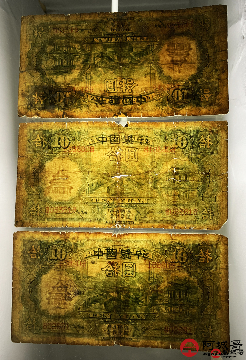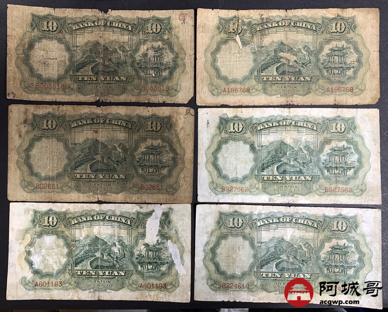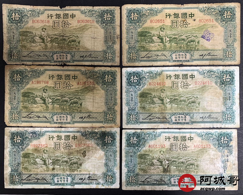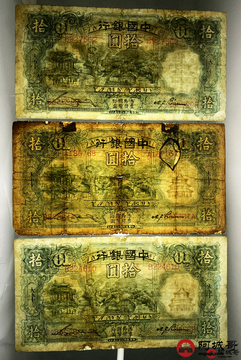 Lot:33 民国二十三年 中国银行 拾圆 天津地名 10张 部分修补6至66成新