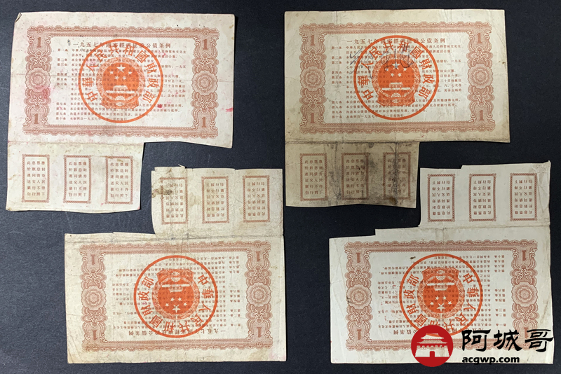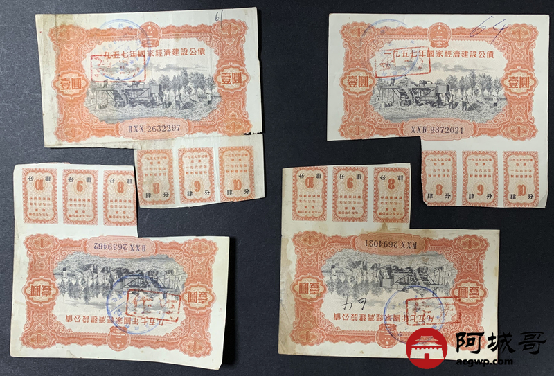 Lot:62 1957年 国家经济建设公债 壹圆 20张 时代印记