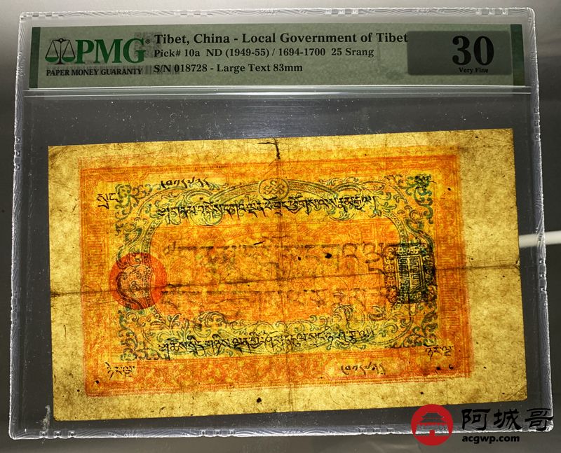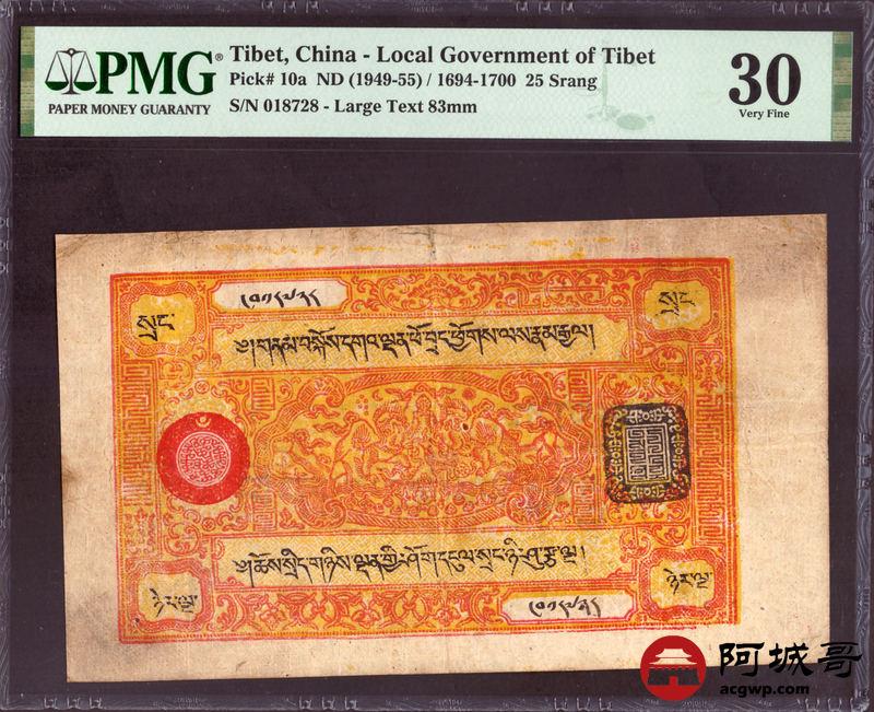 Lot:2 西藏老纸币 25两 PMG 30