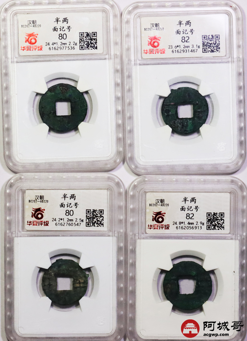 Lot:17 半两 面记号 华夏美80/82四枚一组