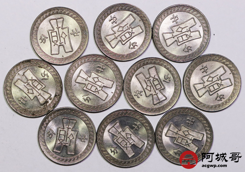 Lot:12 布图二十分镍币A版 10枚一组
