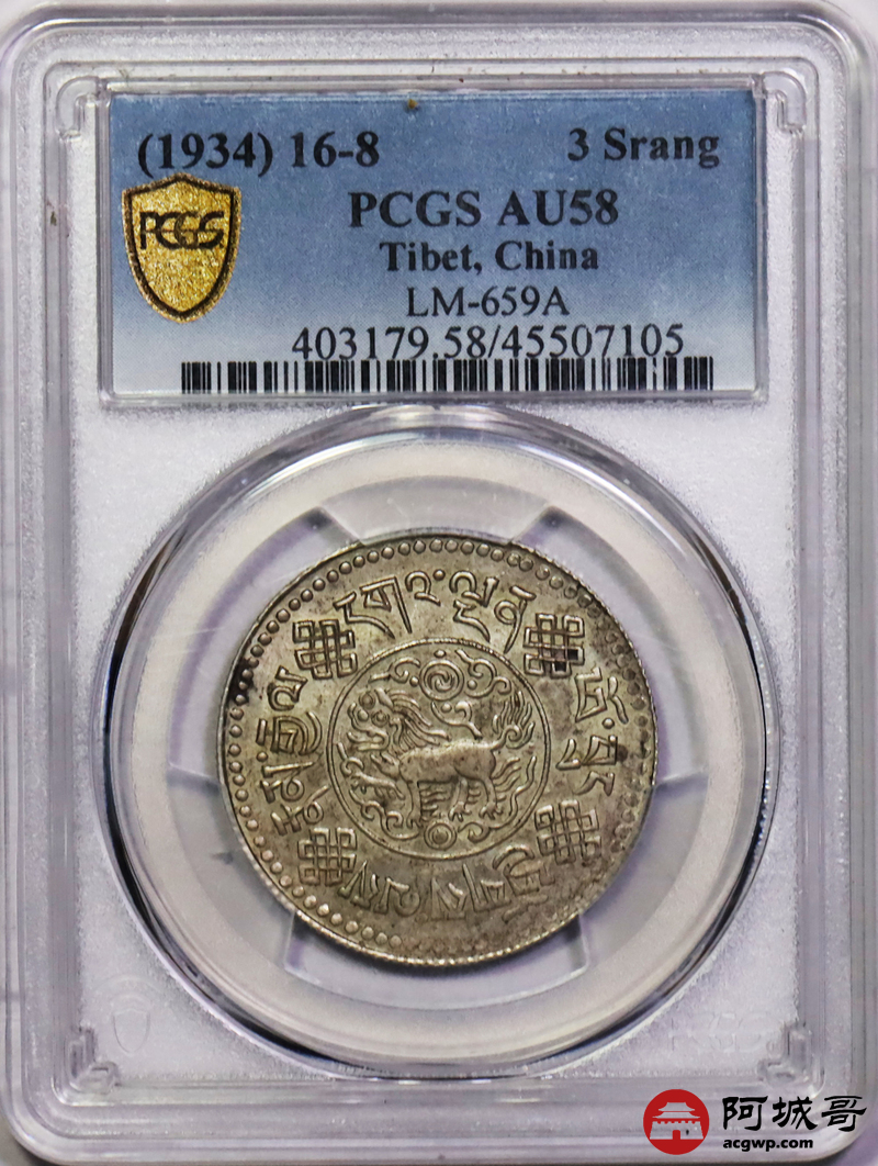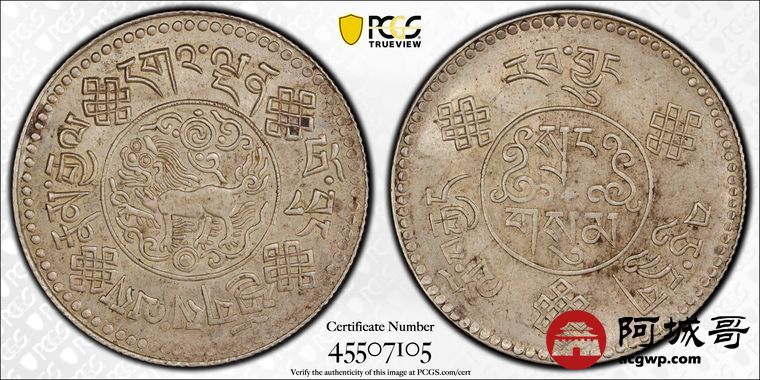 Lot:20 PCGS AU58 西藏1934年初版桑松银币 原味低评