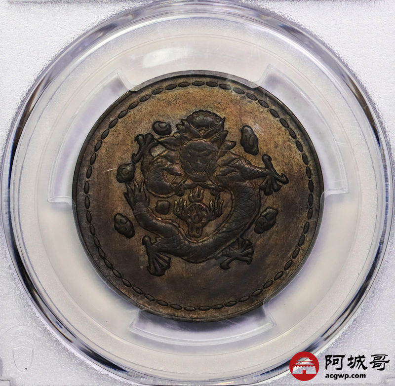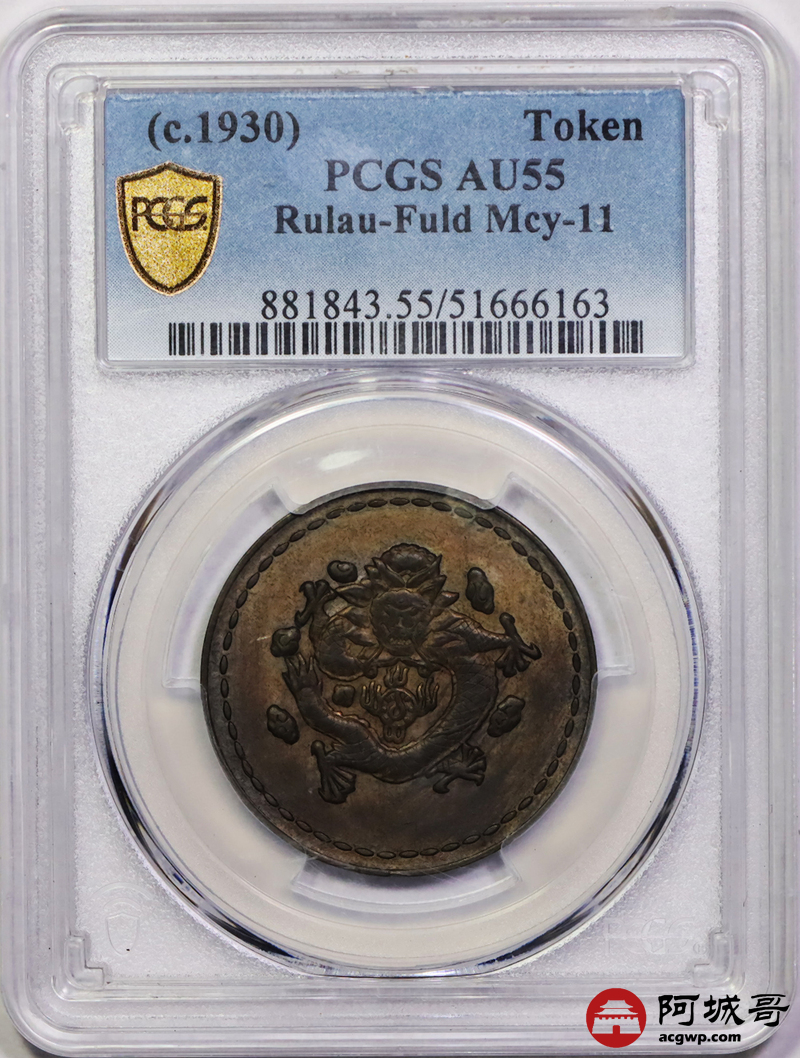 Lot:16 PCGS AU55 民国1930年“长命富贵”中心“汉”飞龙铜币