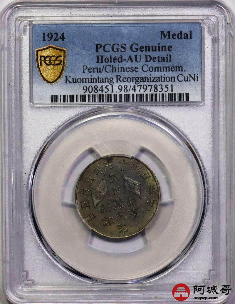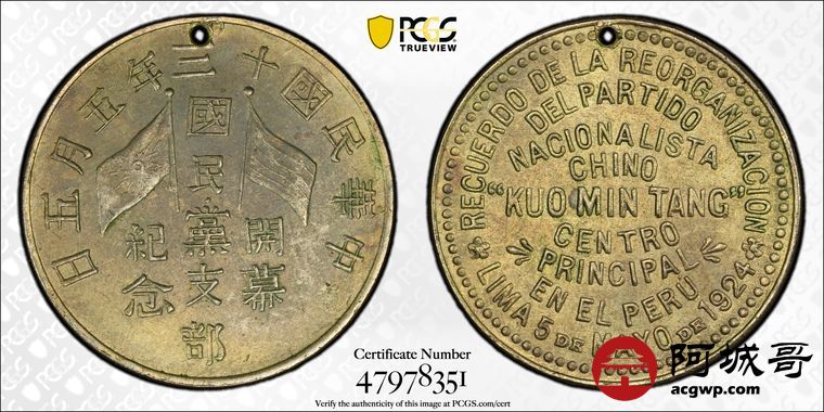 Lot:19 PCGS AU 1924民国十三年国民党支部开幕纪念章