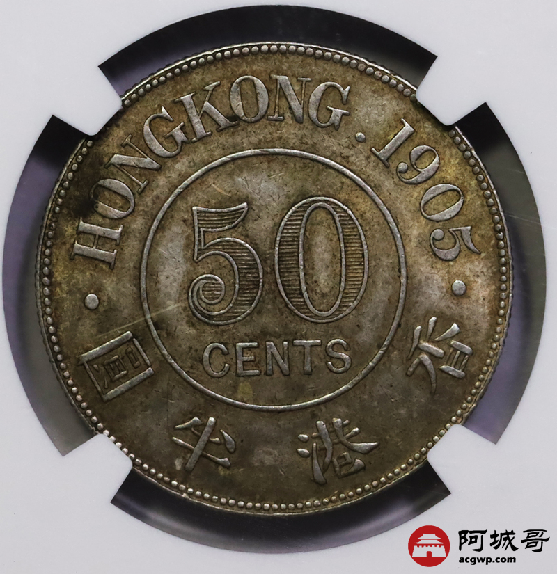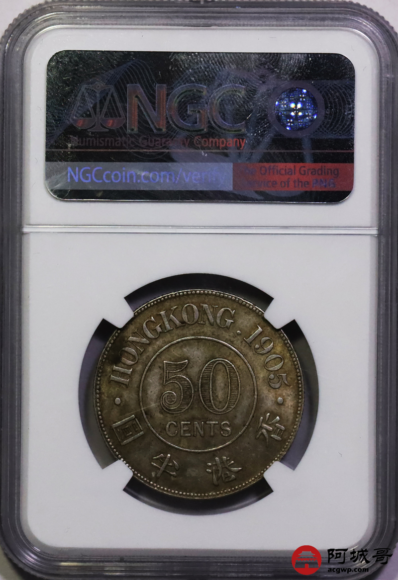 Lot:23 NGC AU55 香港1905年爱七半圆原味银币