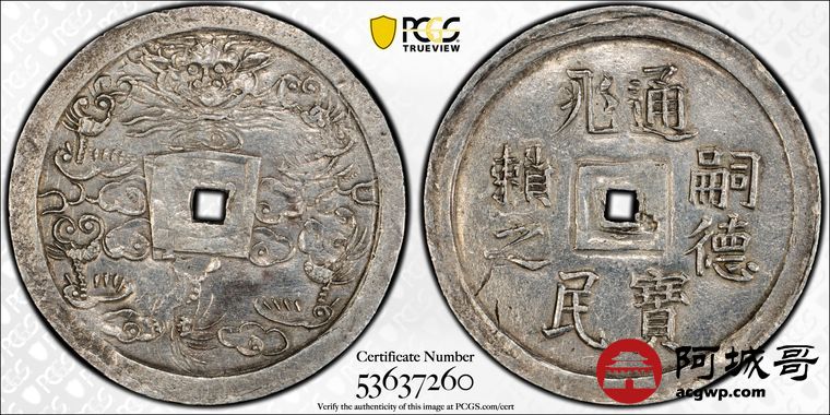 Lot:15 PCGSAU55 安南嗣德兆民赖之大银币 少见Pc广告展示