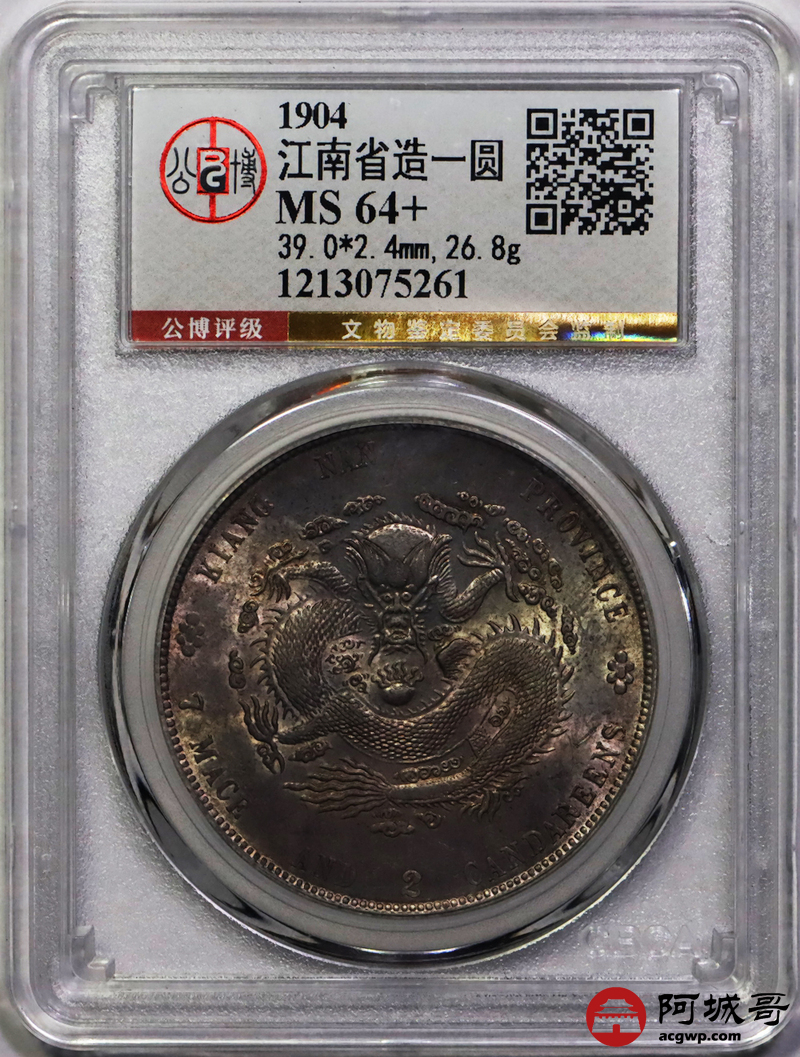 Lot:7 粉彩原光 江南甲辰七钱二分 公博 MS64+