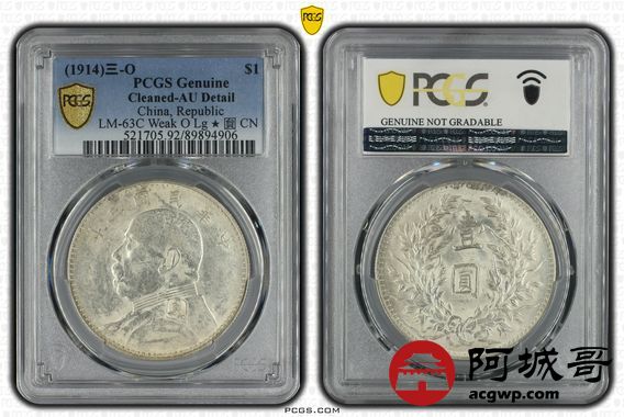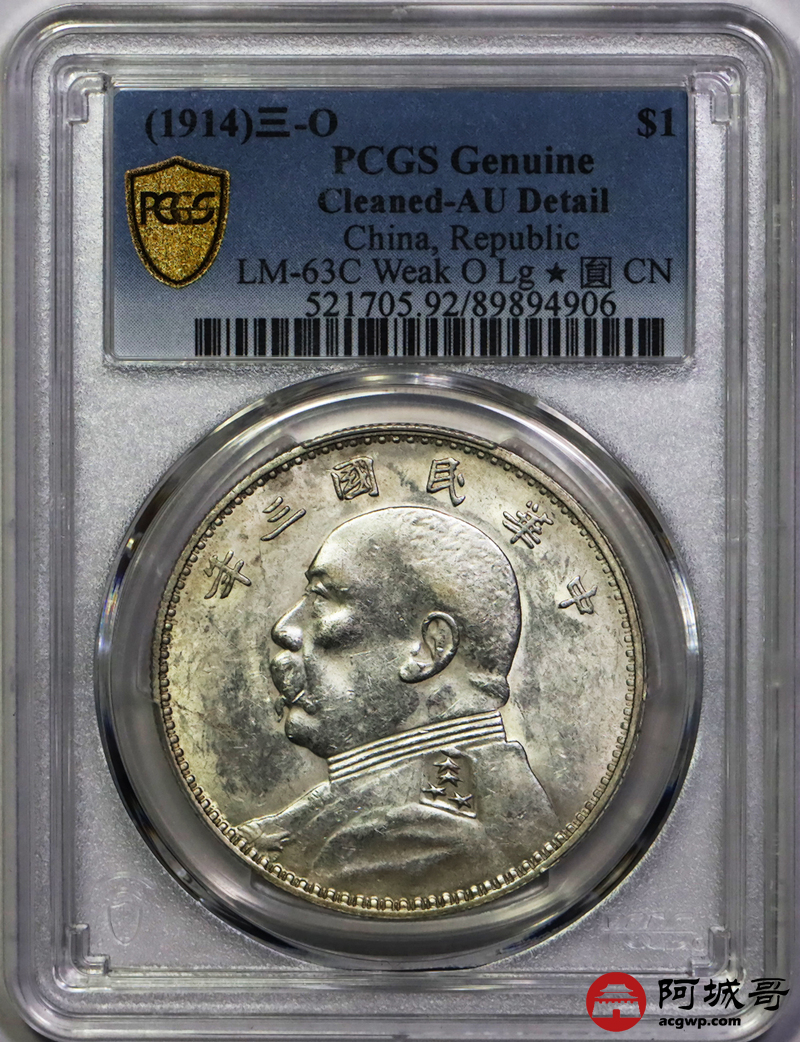 Lot:5 深打底光 三年大头凹简章大星 三角元 PCGS AU