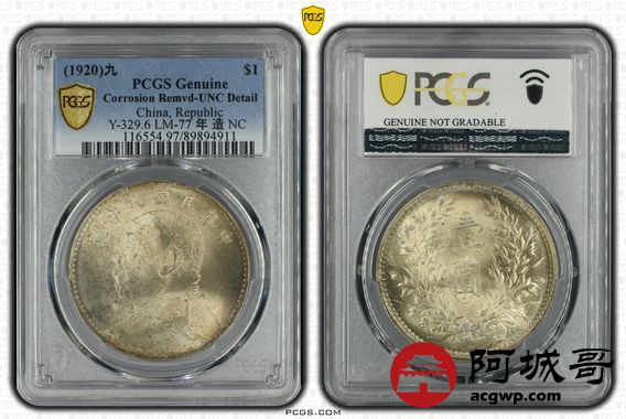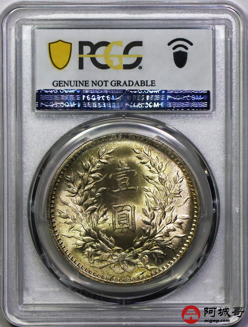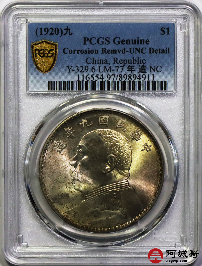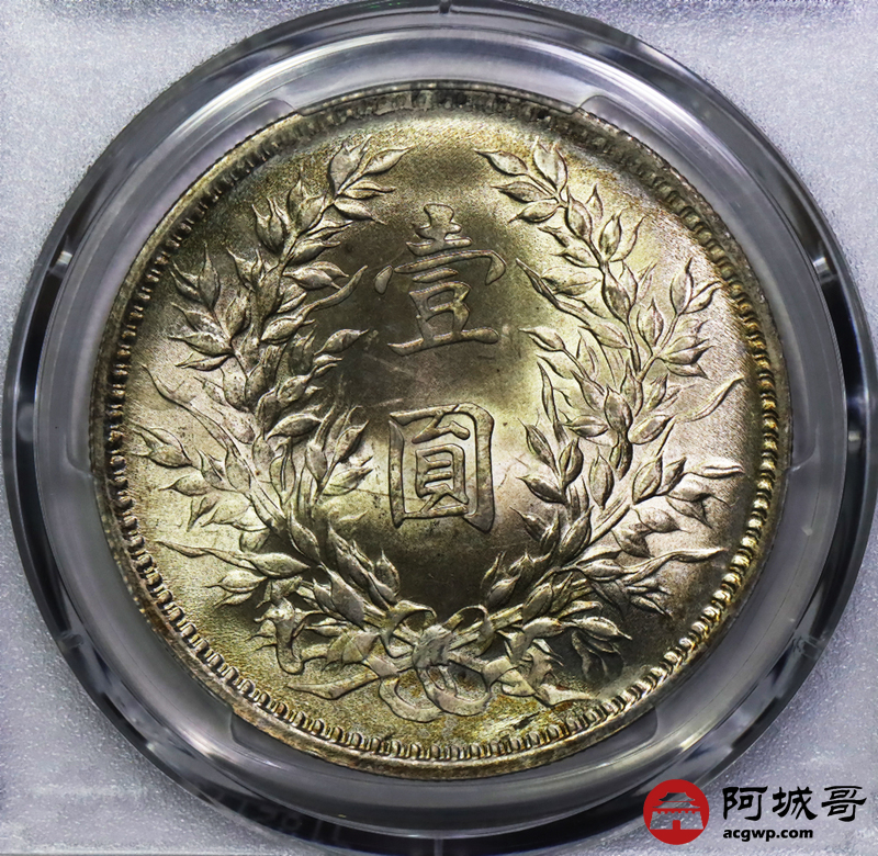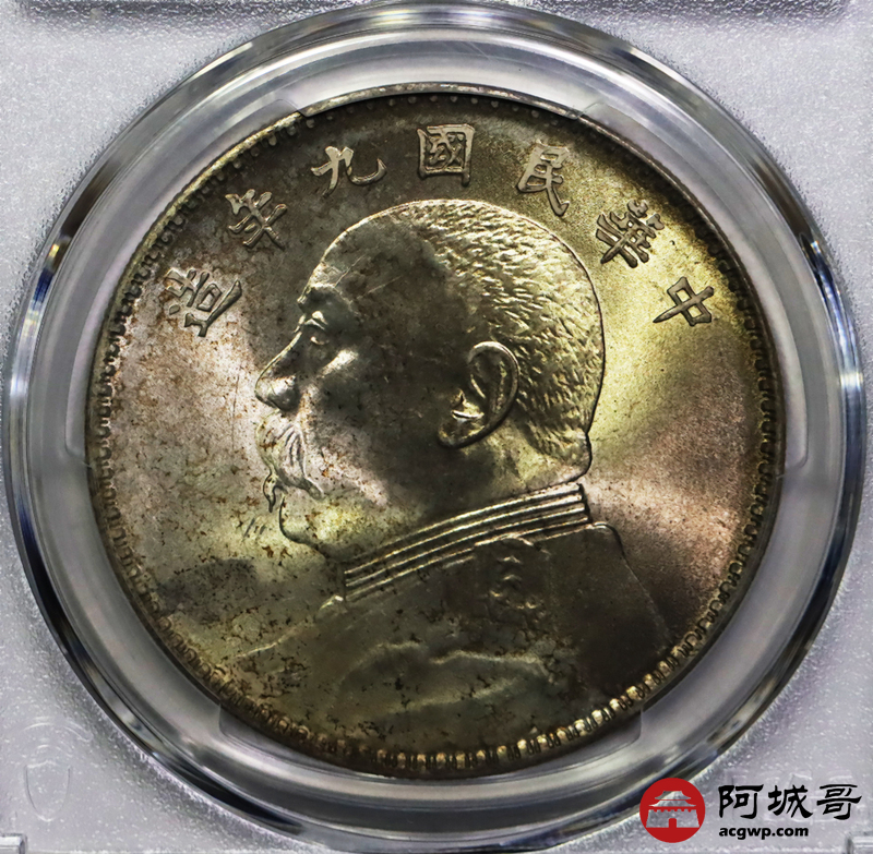 Lot:4 黄油彩 曝光 九年中发壹圆 PCGS UNC