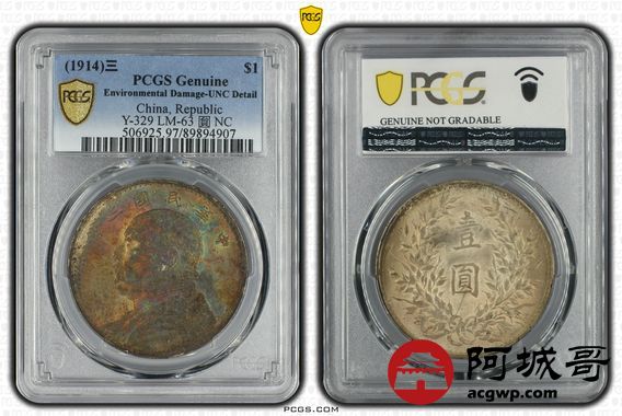 Lot:2 五彩原光 三年大头壹圆 PCGS UNC