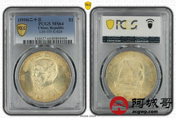 Lot:6 金彩原光 二十三年船洋 PCGS MS64