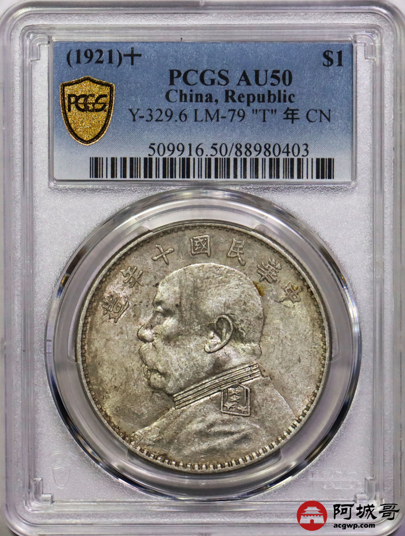 Lot:30 深打 底光 十年大头壹圆 PCGS AU50