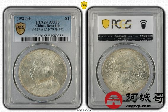 Lot:26 深打 转光 十年大头壹圆 PCGS AU55