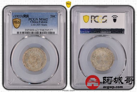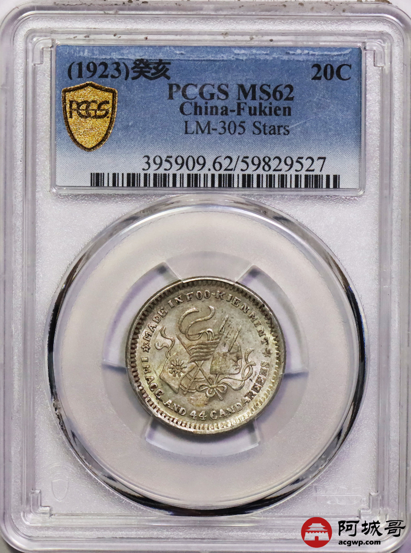 Lot:24 黄油原光 福建中华癸亥一钱四分四厘 五角星名誉品 PCGS MS62