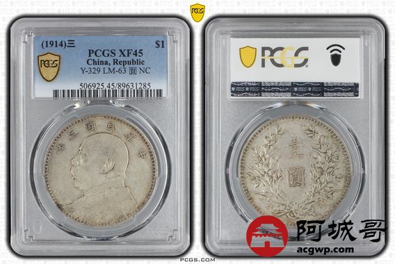 Lot:22 原味老包浆 三年大头壹圆 PCGS XF45