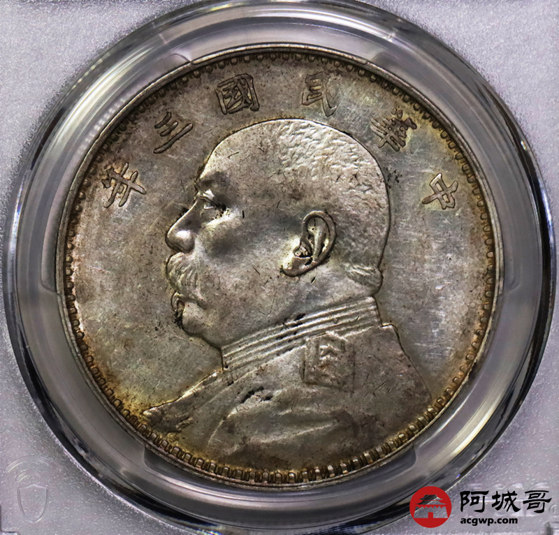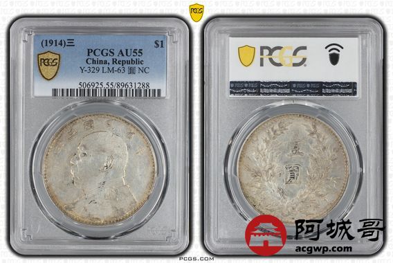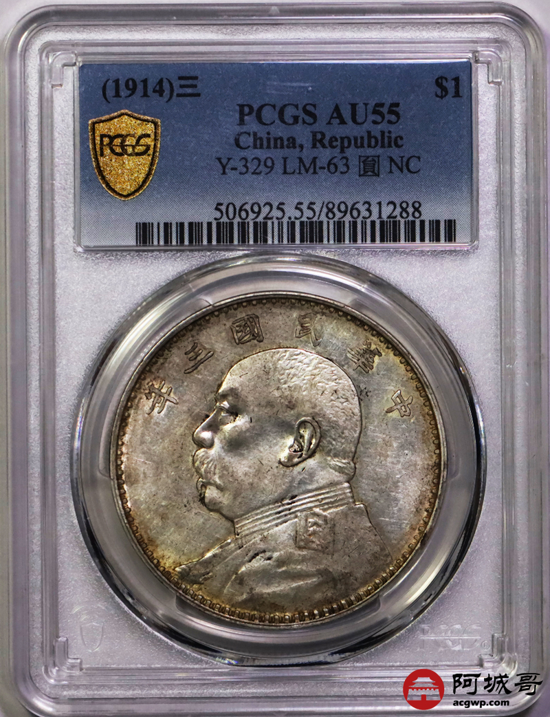 Lot:23 深打 黄油底光 三年大头壹圆 PCGS AU55