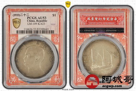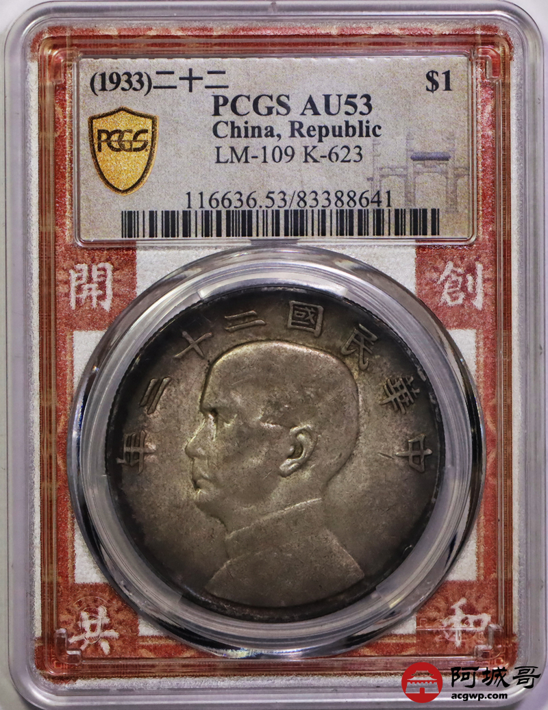 Lot:4 环彩 原味 二十二年船洋 PCGS AU53