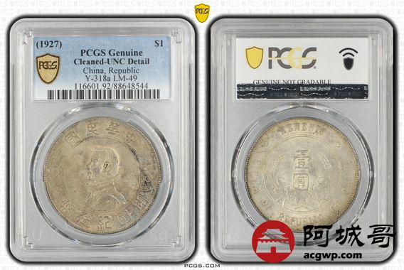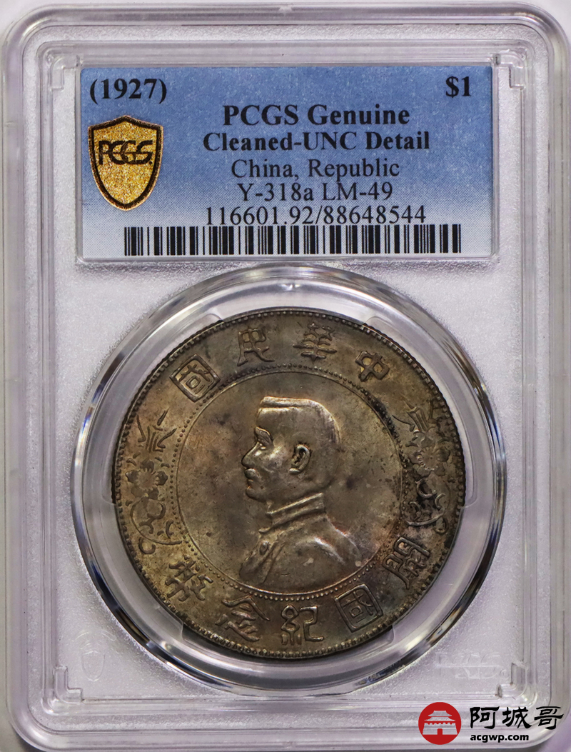 Lot:6 黄油转光 孙像小头壹圆 PCGS UNC