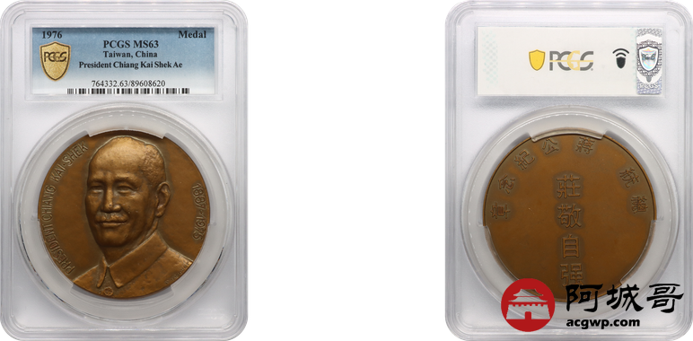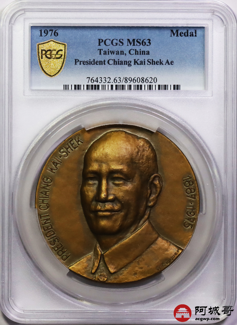 Lot:19 1976蒋中正奉安大典纪念章 比利时造币厂造币 总铸造量1000枚 雕刻师雷内•柯勒奎特(Rene CIiquet) 签字版 PCGS MS63