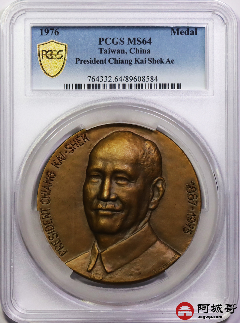 Lot:16 1976蒋中正奉安大典纪念章 比利时造币厂造币 总铸造量1000枚 雕刻师雷内•柯勒奎特(Rene CIiquet) 签字版 PCGS MS64