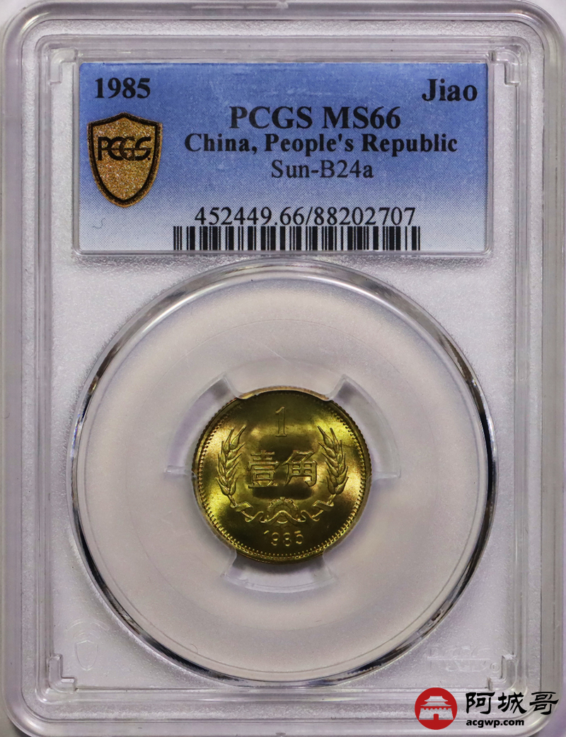 Lot:6 1985年长城币壹角 PCGS MS66