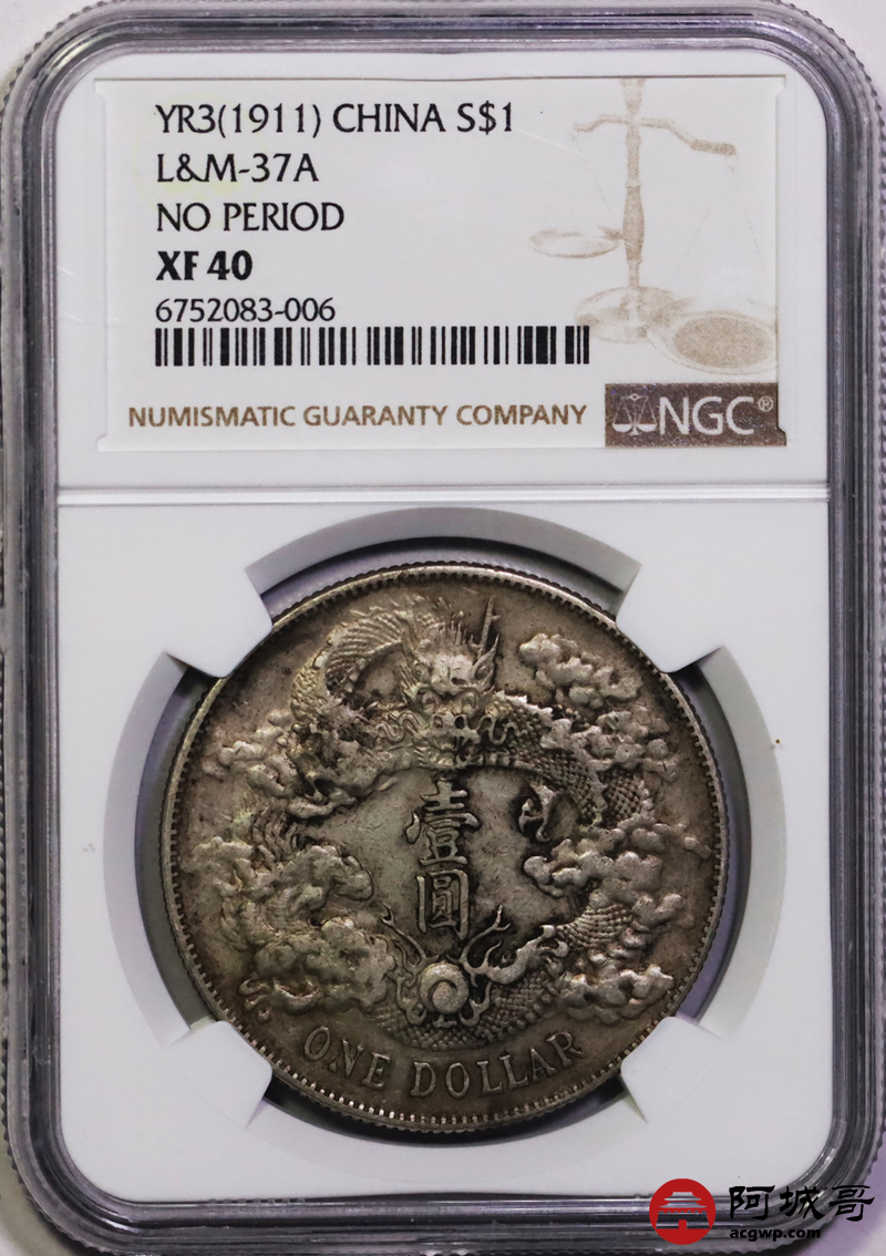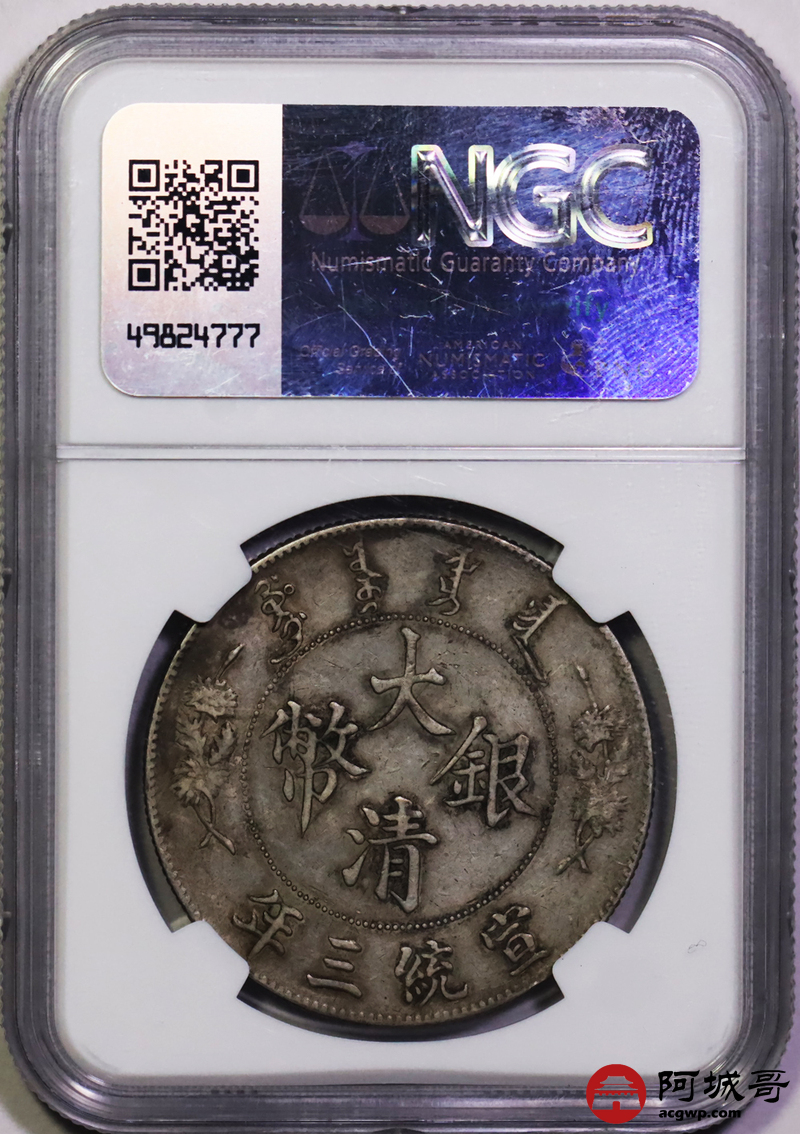 Lot:8 原味老包浆 大清宣三壹圆 NGC XF40
