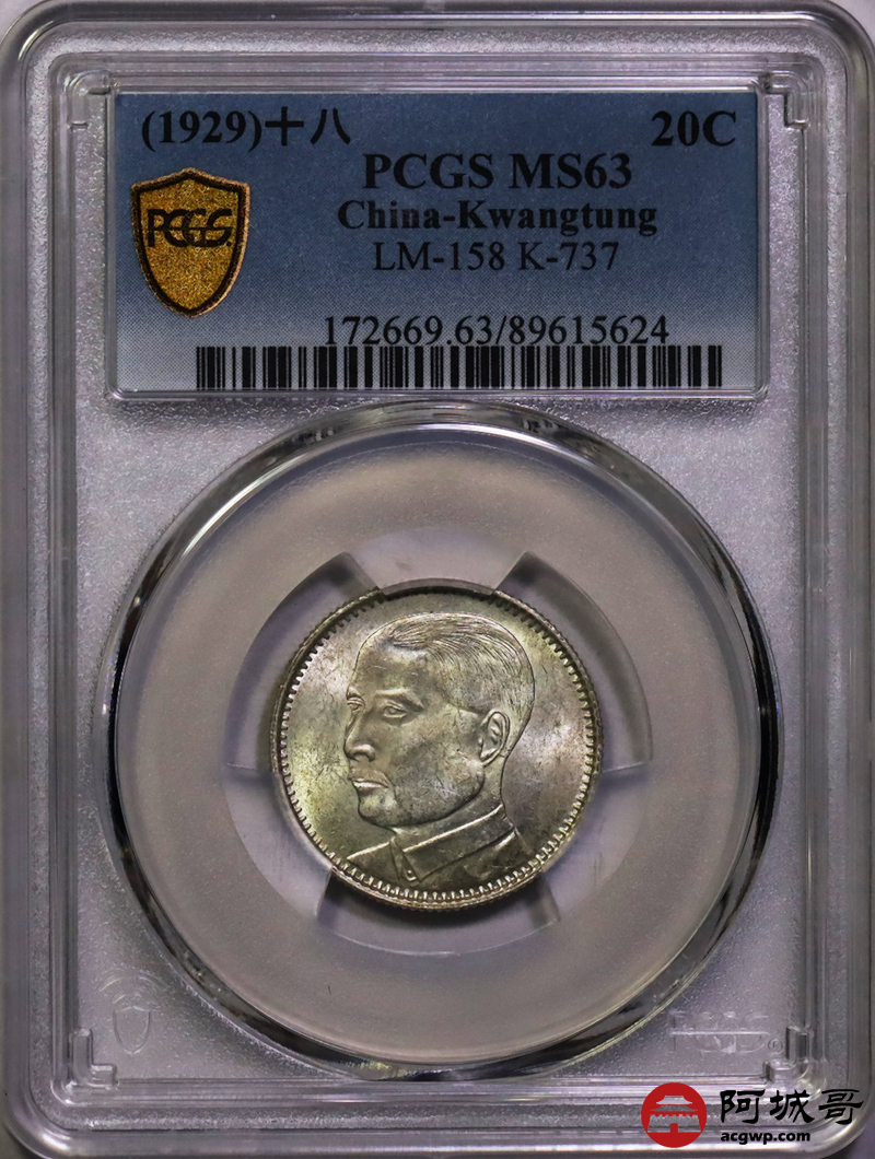 Lot:42 原光 广东十八年孙像贰豪 PCGS MS63
