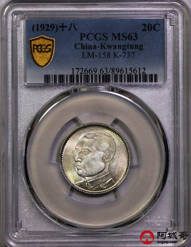 Lot:40 原光 广东十八年孙像贰豪 PCGS MS63
