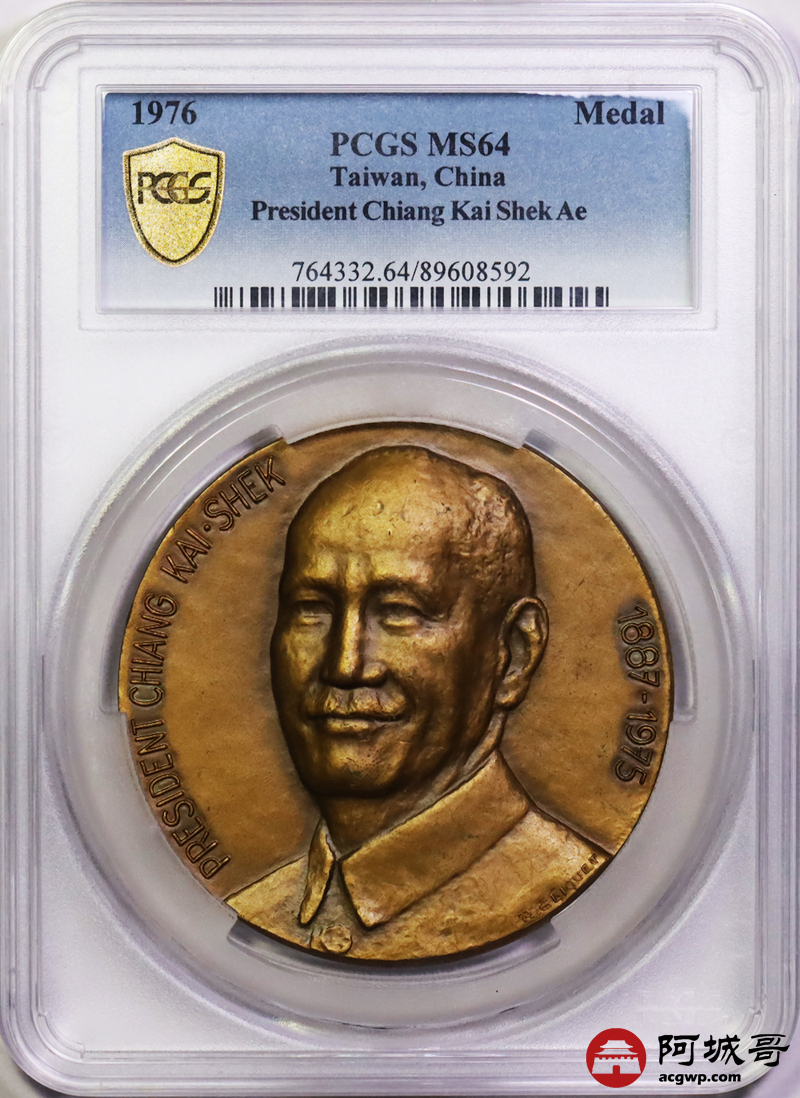 Lot:18 1976蒋中正奉安大典纪念章 比利时造币厂造币 总铸造量1000枚 雕刻师雷内•柯勒奎特(Rene CIiquet) 签字版 PCGS MS64