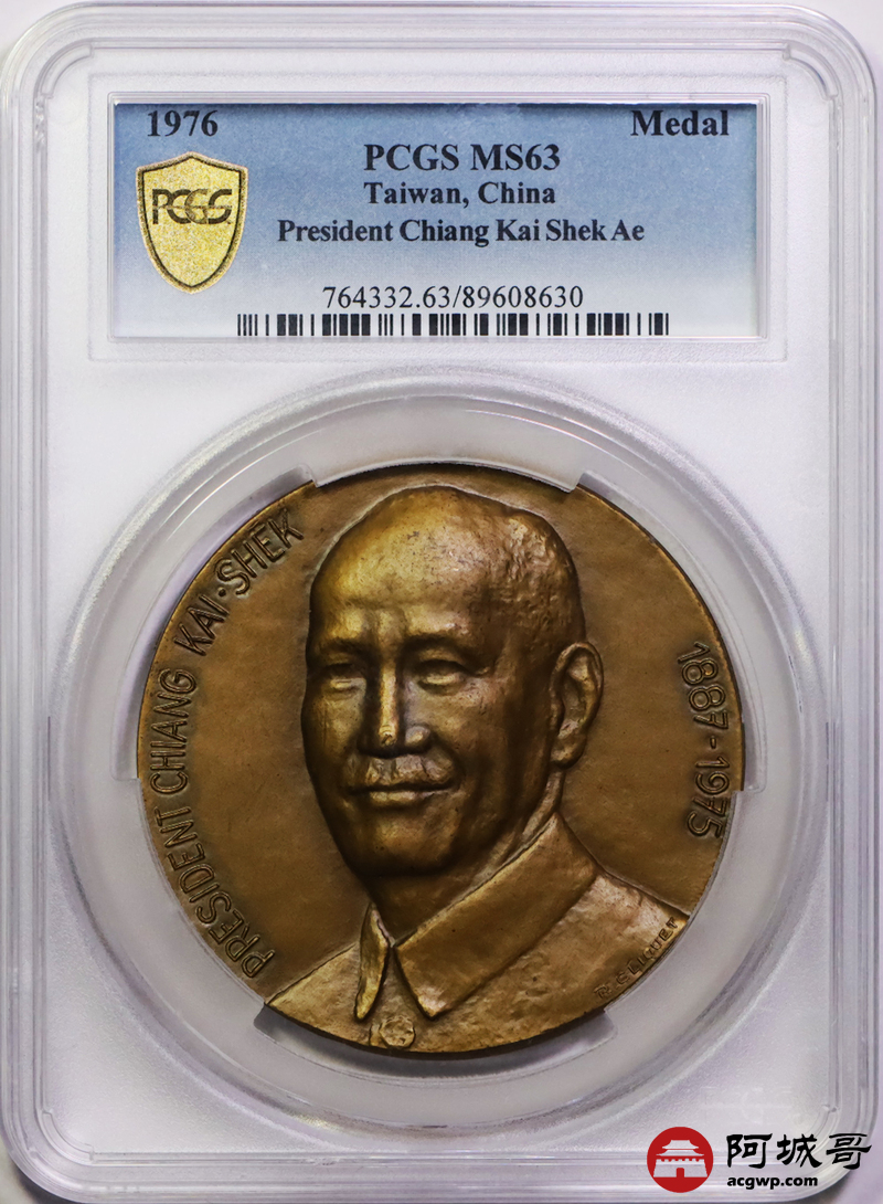 Lot:19 1976蒋中正奉安大典纪念章 比利时造币厂造币 总铸造量1000枚 雕刻师雷内•柯勒奎特(Rene CIiquet) 签字版 PCGS MS63