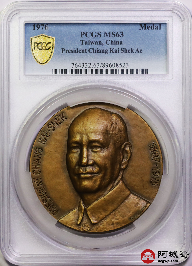 Lot:21 1976蒋中正奉安大典纪念章 比利时造币厂造币 总铸造量1000枚 雕刻师雷内•柯勒奎特(Rene CIiquet) 签字版 PCGS MS63