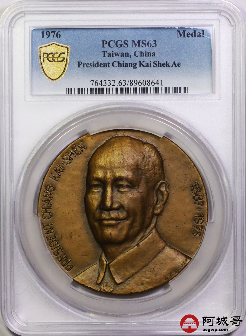 Lot:20 1976蒋中正奉安大典纪念章 比利时造币厂造币 总铸造量1000枚 雕刻师雷内•柯勒奎特(Rene CIiquet) 签字版 PCGS MS63