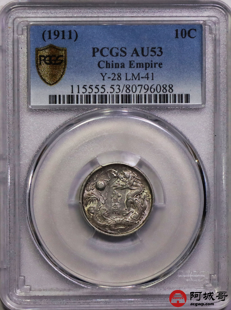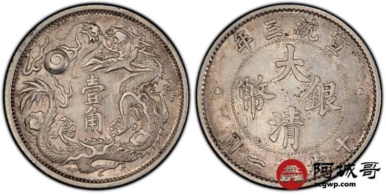 Lot:9 深打底光 大清宣三壹角 PCGS AU53